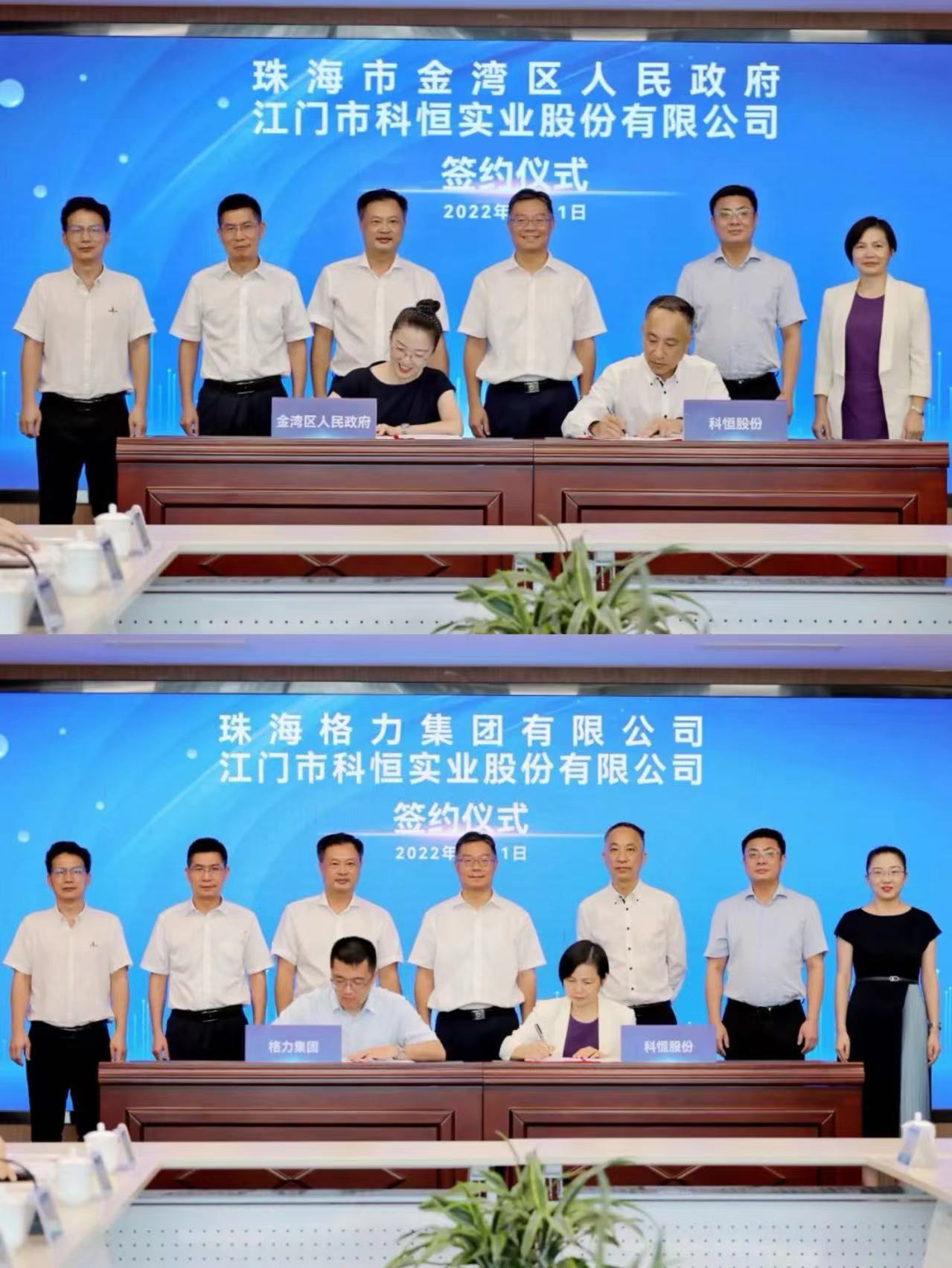 2022年7月,珠海市金灣區(qū)人民政府、珠海格力集團(tuán)與科恒股份簽訂合作協(xié)議,科恒新能源材料及裝備項目將落戶珠海金灣 。