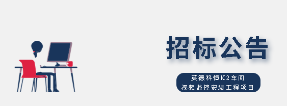 科恒股份車間視頻監(jiān)控安裝工程招標(biāo)公告 江門市科恒實業(yè)股份有限公司全資子公司英德市科恒新能源科技有限公司(以下簡稱英德科恒)K2車間視頻監(jiān)控安裝工程將通過公開招標(biāo)方式進行施工單位招標(biāo)。請投標(biāo)單位仔細、全面閱讀并理解本標(biāo)書內(nèi)容及要求,謹慎按標(biāo)書要求編制相關(guān)的投標(biāo)資料本著自愿、合作及誠信原則參與本次項目...